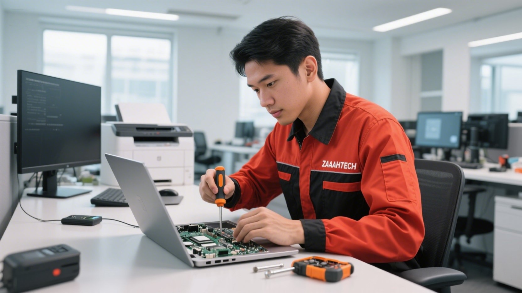 Dengan ZAAHTECH, anda boleh dapatkan solusi lengkap untuk servis komputer, printer, smartphone, gadget & rangkaian internet. Kami pastikan hasil kerja kemas, pantas, selamat, dan ikut bajet anda.